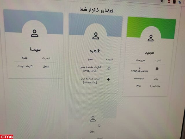 در ادامه نمونهای از نحوه نمایش اطلاعات یک خانوار چهارنفره به نمایش گذاشته شده است.
