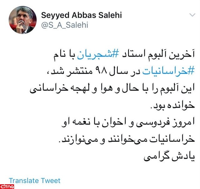به گزارش سیتنا، در متن توئیت سید عباس صالحی آمده است: