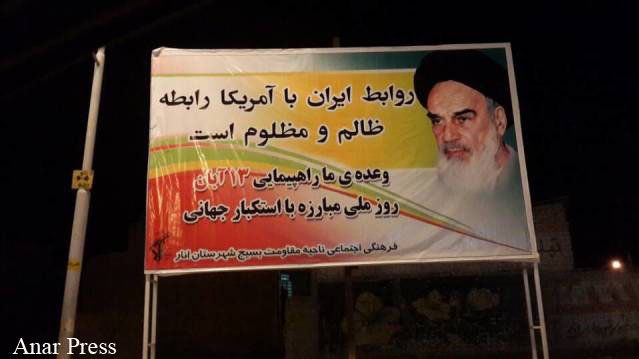 در بنری ضد آمریکایی که در میدان بسیج شهرستان انار از توابع استان کرمان نصب شده است، یک گاف بزرگ وجود دارد.