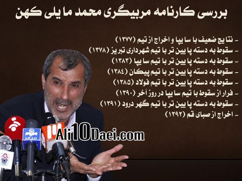 سرمربی پرسپولیس در صفحه ای که در فیس بوک به نامش باز شده از برکناری محمد مایلی کهن ابراز خوشحالی کرده است و کارنامه مربیگری او را هم به طور خلاصه منتشر کرده است.