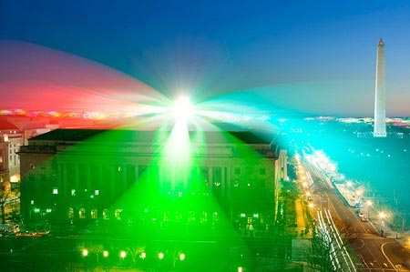 سطح این تصویر با استفاده از ششضلعیهایی پوشش داده شدهاند که در هر راس آن یک آنتن تلفنهمراه قرار گرفته است. هر کاربر درون این شش ضلعیها از یک فرکانس استفاده میکند که با ترکیب فرکانسهای مختلف یک رنگ واحد ایجاد میشود. رنگهای مختلف با ترکیب فرکانسهای شش ضلعیهای مجاور ایجاد میشوند. با کنار هم قراردادن تمامی این اطلاعات، تصویر فوق از شهر شیکاگو حاصل میشود.