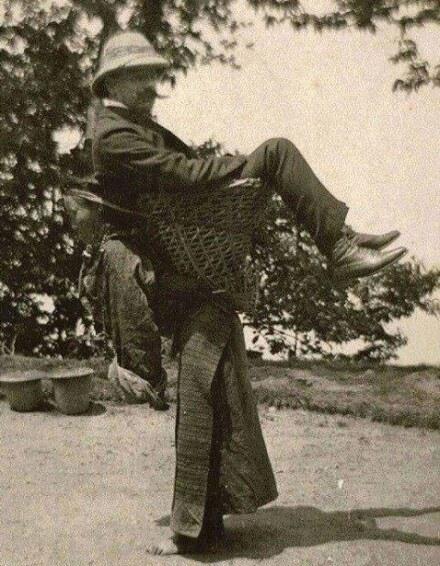این تصویر یک انگلیسی در سال ۱۹۰۳ می باشد که یک زن بنگالی در هند او را بر سرش حمل می کند.