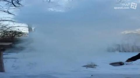 در سرمای این روزهای شهرهای آمریکا، فردی این فکر به سرش رسید که یک ظرف آب را جوش بیاورد، بیرون ببرد و به هوا پرتاب کند.