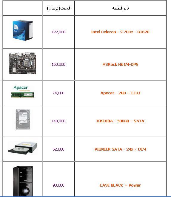هزینه جمع آوری یک سیستم با کیفیت زیر یک میلیون تومان به شرح زیر است: