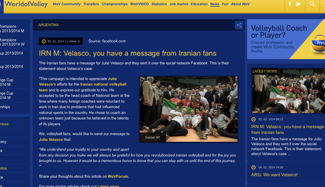 کار زیبا و خوب این کمپین بیش از این که در رسانه های داخلی بازتاب داشته باشد در سایت های والیبالی معتبر دنیا مورد توجه قرار گرفت. حتی سایت فدراسیون جهانی والیبال هم دوبار این صفحه و تلاش ایرانی ها برای نگهداشتن ولاسکو را روی صفحه اصلی اش برد تا اهمیت این موضوع را نشان بدهد.