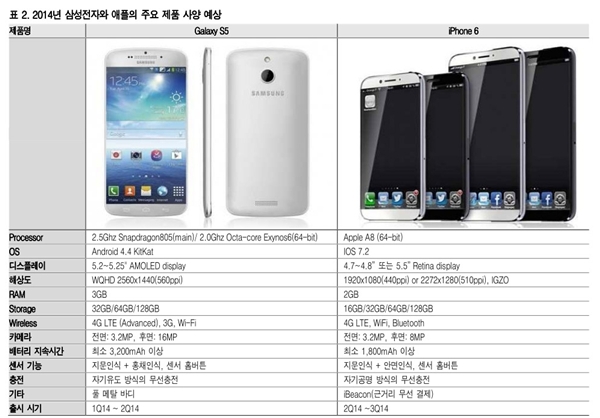 یک مرکز تحقیقاتی در کره جنوبی اطلاعات دقیق مربوط به دو گوشی هوشمند Galaxy S5 سامسونگ و آیفون ۶ اپل را به نقل از منابع داخلی آگاه و موثق منتشر کرد و زمان ورود آنها به بازار را توضیح داد.
