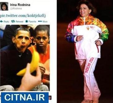 انتشار عکسی از باراک اوباما رئیس جمهور آمریکا و همسرش میشل، در حالیکه شخصی مقابل آنها یک موز را نگه داشته، توسط "ارینا رودنینا" پاتیناژباز معروف روسیه و سیاستمدار هوادار پوتین، در توییتر جنجال بزرگی را به راه انداخت. بسیاری از کاربران توئیتر انتشار این عکس را توهین آمیز و نژاد پرستانه توصیف کرده اند.