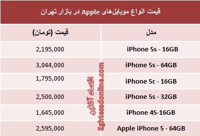 به گزارش بازار موبایل تهران، قیمت انواع محبوب ترین مدل های تلفن همراه برند اپل در بازار به شرح زیر است: