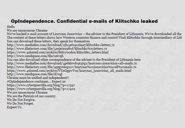 این ایمیلها که توسط گروه موسوم به «اوکراین گمنام» Anonymous Ukraine منتشر شده، نشان میدهد که کلیچکو با دریافت پول از کشورهای غربی، برنامههای آنها برای تضعیف دولت منتخب اوکراین را پیگیری کرده است.