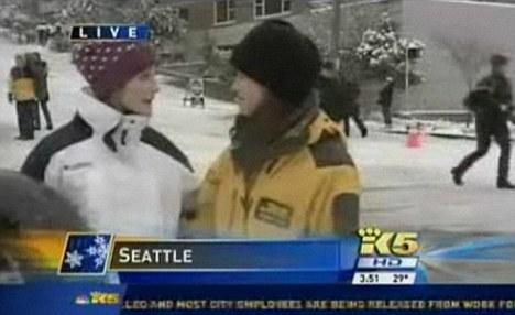 به گزارش سیتنا به نقل از روزگار نو، در این زمان خبرنگاران هم به دنبال مردم می روند تا گزارشی تهیه کنند. خبرنگار شبکه ی "کینگ 5" سیاتل که "مگ کویل" نام دارد در حال تهیه ی گزارش بود که یکی از مردمی که در حال لیز خوردن بود رفتار عجیبی با او داشت.