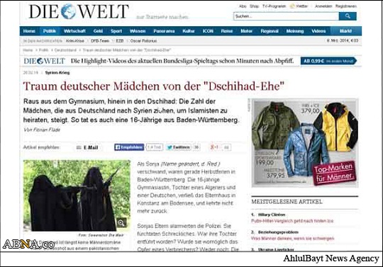روزنامه دی ولت فاش کرد بیش از ۲۰ دختر نوجوان آلمانی به هدف ازدواج با تروریستها در سوریه به این کشور رفته اند.