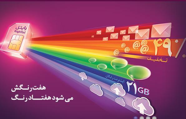 * کلیه مشتریانی که در بازه زمانی 20 اسفند تا 25 فروردین اقدام به خرید سیمکارتهای اعتباری رایتل نمایند، علاوه بر هدایای ارزشمند بسته آغازین، به ازای مصرف تنها 7 هزار تومان از خدمات رایتل در هر ماه، میتوانند از 7 گیگابایت اینترنت پر سرعت رایگان در هر ماه از فصل بهار بهرهمند شوند.