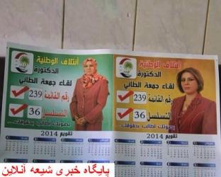 یک نامزد زن به نام «لقاء جمعة الطائی» در پوستر تبلیغاتی خود، با چاپ کردن تصویری با حجاب و بی حجاب از خود، قصد دارد همزمان هم آرای اسلامگرایان را کسب کند و هم آرای لیبرال ها را.
