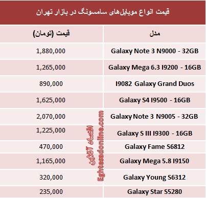 قیمت انواع محبوب ترین مدل های تلفن همراه برند سامسونگ منتشر شد.