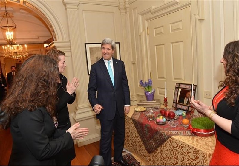 وزیر خارجه آمریکا در پیام خود به مناسبت عید نوروز گفته بود: "من مفتخرم که در آرزوی داشتن نوروزی شاد، سلامت و با کامیابی برای مردم ایران و همه کسانی که در سرتاسر دنیا - از آسیای شرقی تا ناحیه خلیج فارس – آن را جشن میگیرند به پرزیدنت اوباما می پیوندم. خانواده خود من امروز به خاطر حضور و مهر ایرانی-آمریکاییان قویتر است و من به ارتباطات خانوادگی ای که ما آمریکاییان با ایران و مردمانش داریم افتخار میکنم."