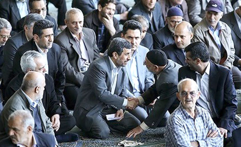 محمود احمدینژاد، محمدرضا رحیمی و برخی دیگر از اطرافیانش از جمله دامادش (خورشیدی) پس از مدتها دیروز در نماز جمعه تهران حاضر شدند.