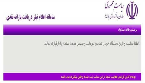 برای ثیت نام در سایت یارانه نقدی، تاریخ دستگاه خود را چک کنید!
