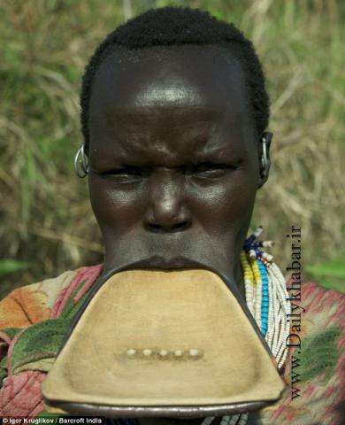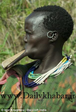 دختران قبیله ای در اتیوپی برای زیبایی لب دست به حرکات وحشتناکی می زنند.