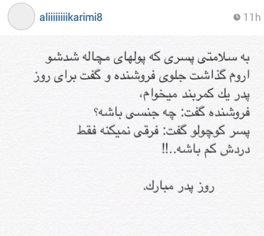 جادوگر به مناسبت روز پدر عکسی را در اینستاگرامش منتشر کرد و اینگونه روز پدر را تبریک گفت. کریمی متن این عکس را پیش تر در صفحه فیس بوکش نیز گذاشته بود.