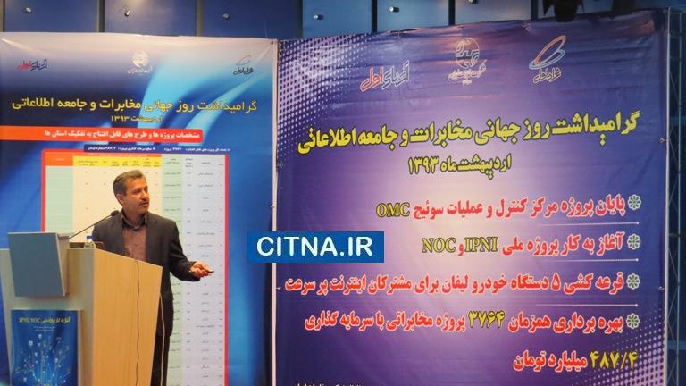 به مناسبت روز جهانی مخابرات و جامعه اطلاعاتی، 3764 پروژهی مخابراتی با سرمایه گذاری بالغ بر 487 میلیارد تومان به طور همزمان مورد بهره برداری قرار گرفت.