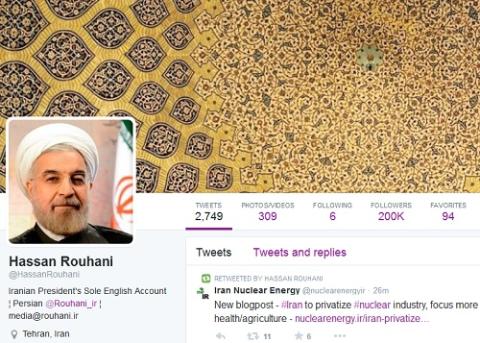 200 هزار نفر حساب توییتر رئیس جمهور ایران را دنبال می کنند و تاکنون 2749 توییت از سوی این حساب منتشر شده است.