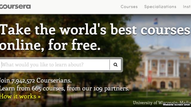 کورسرا که در کالیفرنیای آمریکا قرار دارد، درسهایی از ۱۰۰ دانشگاه جهان را در خود جای داده است.