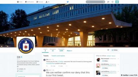 آژانس اطلاعات مرکزی آمریکا (سیا) با توئیتی طنزآمیز فعالیت رسمی خود در این شبکه اجتماعی را شروع کرد. حضور سیا در شبکههای اجتماعی سروصدای زیادی برپا کرده و شناسهی این سازمان کاربران جدیدی را جذب کرده است.