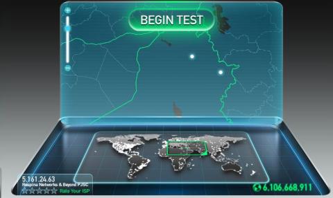 زمانی که صحبت از انجام آزمون برای سنجش سرعت اینترنت میشود، ابزارهای رایگان آنلاین زیادی یافت میشود اما هیچ کدام از این ابزارها را نمیتوان در دقت، سادگی و در عین حال جذابیت واسط کاربری با SpeedTest قیاس کرد. وب سایت SpeedTest.net فهرست بلند بالایی از انواع سرور های آزمایش سرعت را ترکیب میکند و در عین حال ابزارهای آماری بسیار قدرتمندی را در اختیار دارد. بعد از ورود به این وب سایت تنها کافی است بر روی دکمه Begin Test کلیک کنید تا آزمون سرعت اینترنت شما آغاز شود: