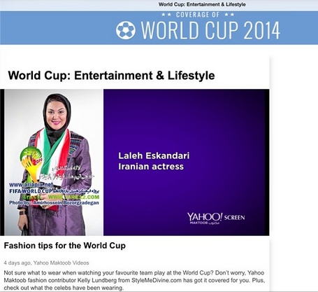 تصویر لاله اسکندری در کلیپ فشن یاهو برای جام جهانی 2014 را در ذیل میبینید: