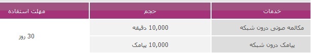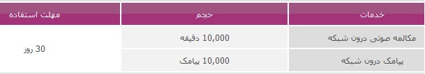 - مکالمه درون شبکه: سقف مصرف منصفانه از این سرویس 10,000 دقیقه می باشد.