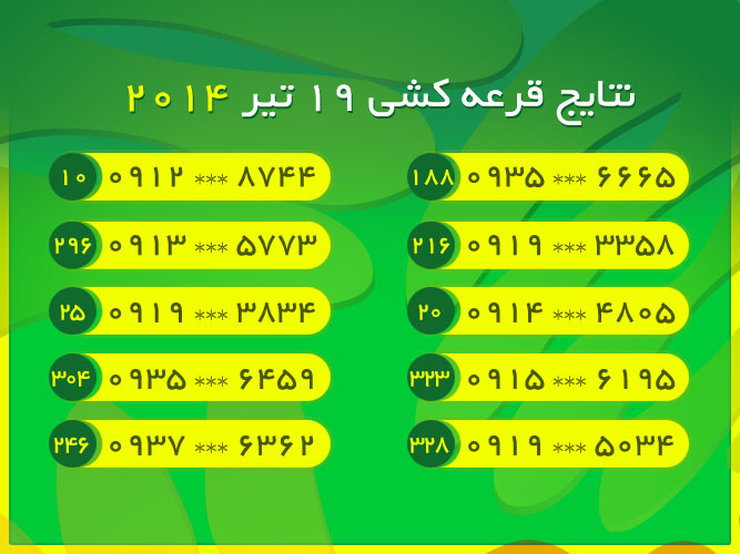 به گزارش سیتنا، ۱۰ نفر به عنوان برنده این مسابقه مشخص شدند که شماره های آنان به شرح زیر است: