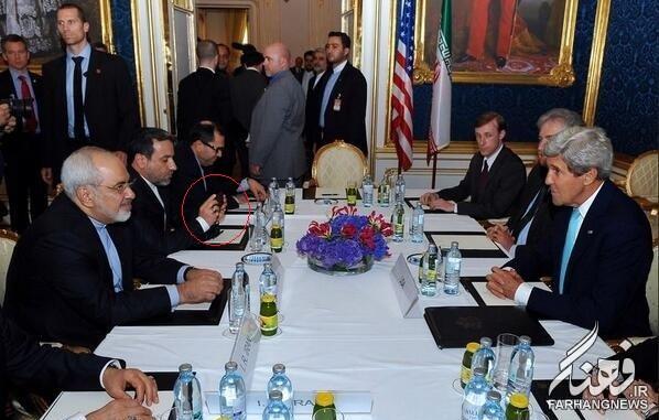 سید عباس عراقچی، عضو تیم مذاکره کننده هسته ای در حاشیه مذاکره ظریف با جان کری در حال عکاسی از جان کری است که آن را در صفحه اینستاگرام خود قرار دهد!