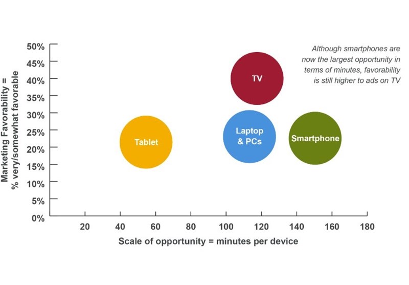 علیرغم اینکه اسمارتفونها هماکنون بیشترین استفاده را در دنیا دارند اما تبلیغات تلویزیونی مؤثرتر هستند.