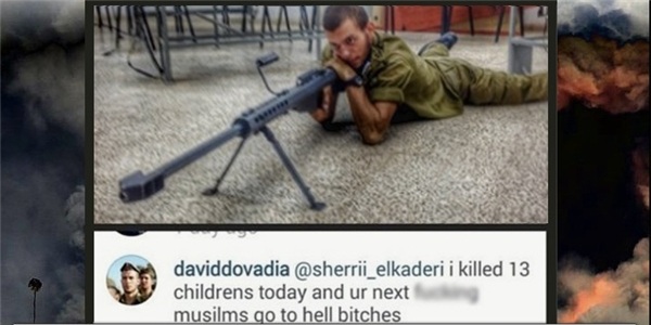 به گزارش سیتنا به نقل از پرس تی وی، وی در این پست عکسی از خود را در حال شلیک با اسلحه تک تیرانداز منتشر کرده و تصریح نموده که شخصا در یک روز 13 کودک فلسطینی را به شهادت رسانده است. در ادامه این پست چنین آمده است: مسلمانان بروید به جهنم!
