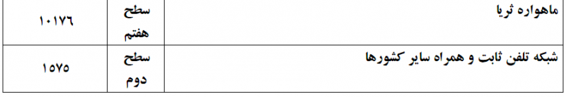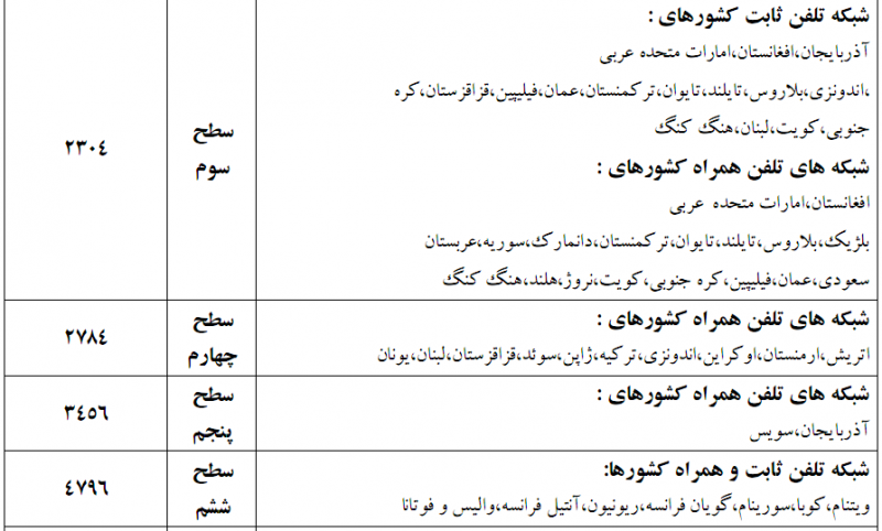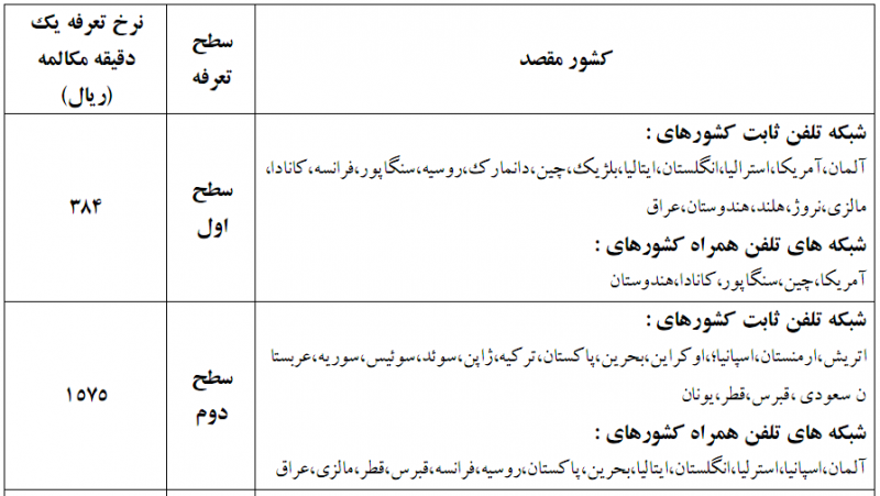 تعرفهی جدید مکالمات بین الملل مطابق جدول ذیل میباشد: