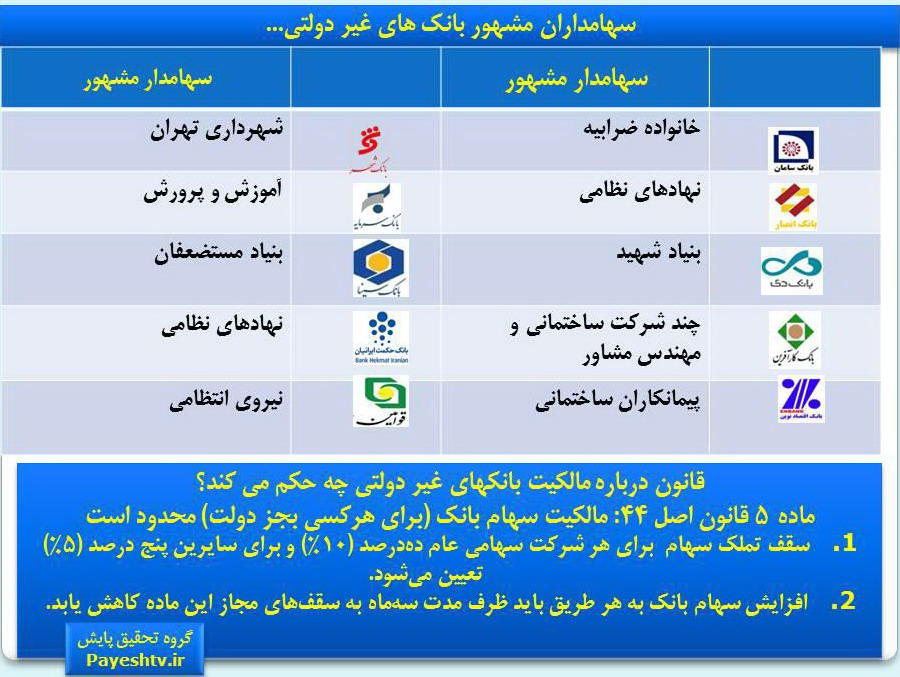 گروه تحقیق برنامه تلویزیونی پایش عکس زیر از سهامداران مشهور بانک های غیر دولتی منتشر کرده است: