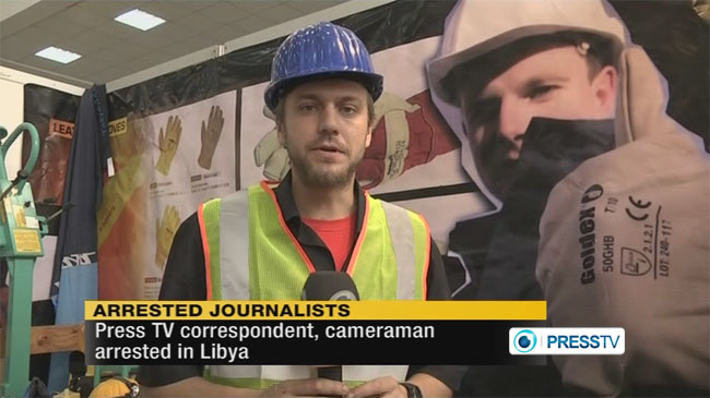 دو خبرنگاران انگلیسی که تحت عنوان خبرنگاران شبکه "پرس تی وی ایران" فعالیت میکردند! هفته گذشته در طرابلس دستگیر شدند. این اولین باری نیست که خبرنگاران خارجی خصوصاً امریکایی و انگلیسی از نام کشورمان برای اجازه تردد استفاده کردهاند.