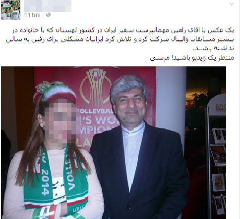 «یک عکس با اقای رامین مهمانپرست سفیر ایران در کشور لهستان که با خانواده در بیشتر مسابقات والیبال شرکت کرد و تلاش کرد ایرانیان مشکلی برای رفتن به سالن نداشته باشند.