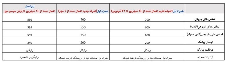 حال برای شفاف شدن تعرفههای هر دو اپراتور اول و دوم کشور در زمینه خدماتدهی به حجاج بیتالله الحرام نگاهی گذرا به تعرفههای آنها در بخشهای مختلف میاندازیم.