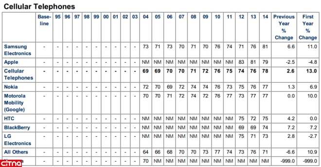 همانطور که از خبر مشخص است سامسونگ توانسته بیشترین میزان رضایت مندی در ایالات متحده آمریکا را از آن خود کند و درجایگاه اول بایستد پس از آن اپل نیز با دو درصد کاهش میزان رضایت در جایگاه دوم ایستاده است همانطور که در تصویر مشخص است سامسونگ به نسبت به سال گذشته توانسته 5درصد رشد داشته باشد و اپل نیز 2 درصد کاهش !