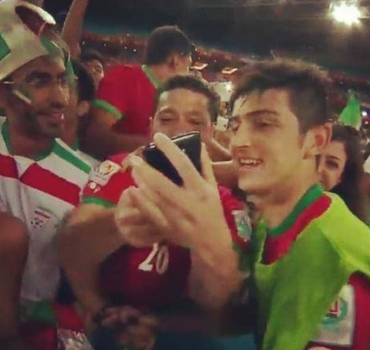 به گزارش سیتنا، زننده گل حساس و سه امتیازی ایران مقابل قطر که در دقیقه 60 با توجه به مصدومیت از زمین بیرون رفته بود با درخواست تماشاگران در کنارشان حاضر شد و عکس سلفی گرفت.