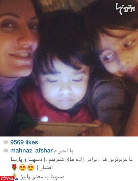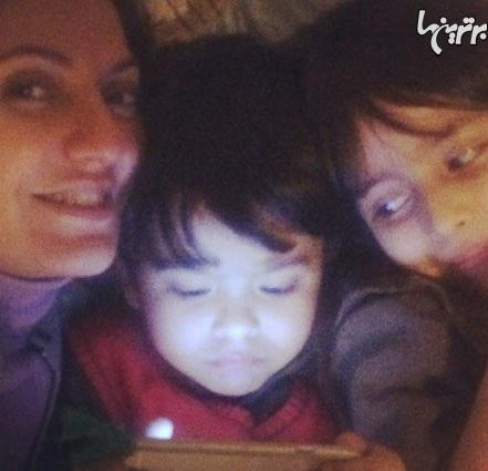 سلفی مهناز افشار و برادرزاده هایش دسپینا و پارسا. آقا پارسا هم که بازی با گوشی را به سلفیِ عمه جان ترجیح داده است!