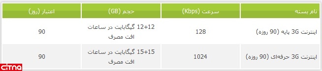 **جزییات بسته 3 ماهه اینترنت به شرح زیر میباشد: