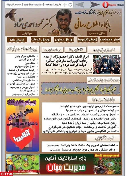 به گزارش سیتنا، روزنامه قانون در شماره جدید خود سایت جدید احمدی نژاد را به صورت طنز آمیز طراحی کرده است.