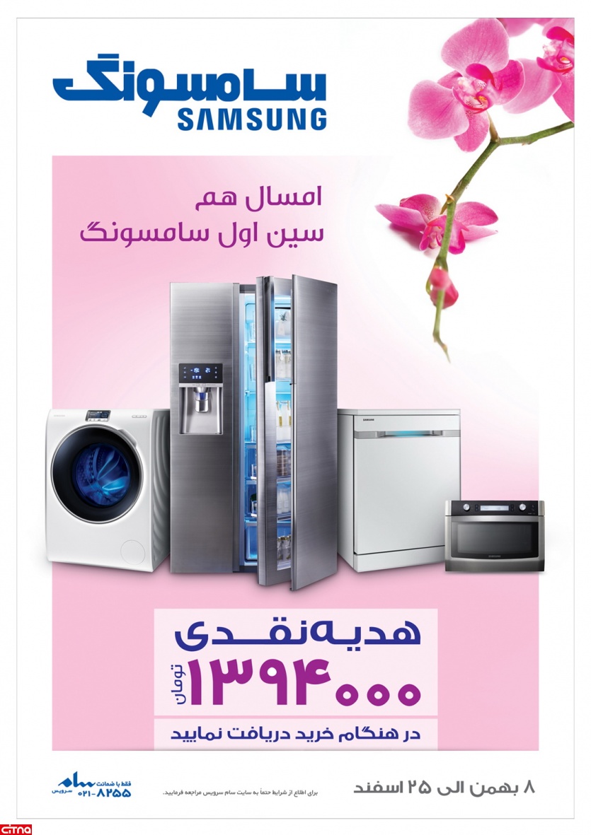 شرکت سامسونگ الکترونیکس نیز به مناسبت نزدیک شدن به سال جدید، تخفیف های ویژهای را برای مشتریانی که تا 25 اسفند ماه 1393 اقدام به خرید محصولات خانگی سامسونگ کنند، در نظر گرفته است.