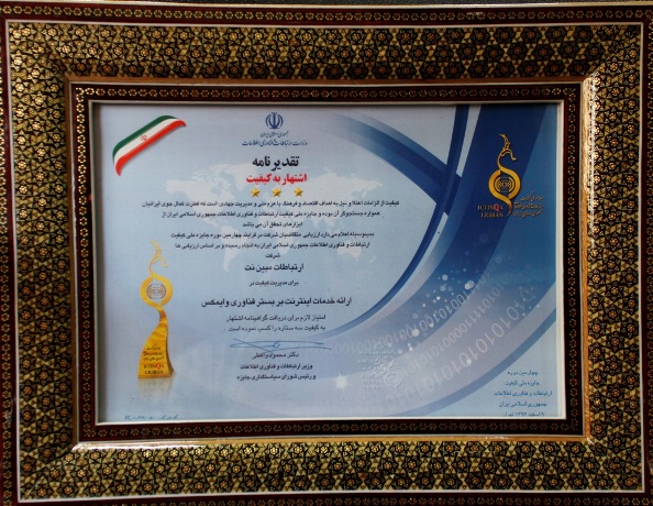 شرکت ارتباطات مبیننت پیش از این توانسته بود گواهینامهی اشتهار به کیفیت یک ستاره را کسب کند اما امسال با پیشرفتی چشمگیر موفق شد در سطح اشتهار به کیفیت، گواهینامهی سه ستاره را به دست آورد. این موفقیت ارزشمند نشاندهندهی تلاش و کوشش مستمر و جدیت مدیریت و کارکنان شرکت ارتباطات مبیننت برای ارتقای سطح کیفیت ارایهی خدمات به مشترکان و هموطنان عزیز است.