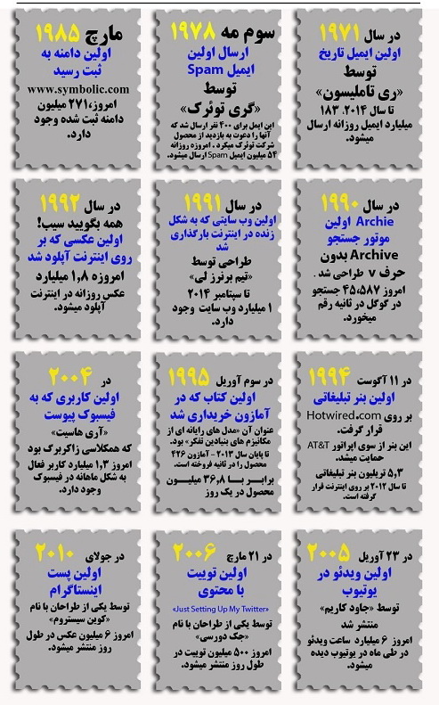 در اینفوگراف زیر ما تلاش کردهایم، اولین رویدادهای مشهور در اینترنت را برای شما تشریح کنیم.