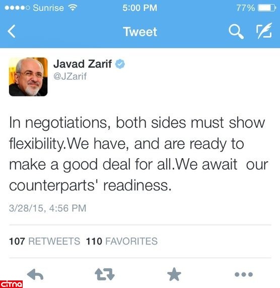پیام توئیتری ظریف به طرفهای مذاکره در لوزان