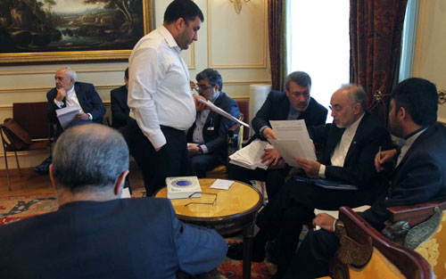 14:00 خبرگزاری ایرنا با انتشار عکس زیر نوشت: در حالی که در این مدت هیچ بحثی درباره متن نمی شد و هر خبری می آمد، همه رد می کردند، تصویری که عکاسان گرفتند نشان می دهد که همه اعضای تیم مذاکره کننده ایران در حال مطالعه یک متن چند صفحه ای هستند. ظاهرا این همان متنی است که قرار است در جلسه با وزیران بررسی و تصویب شود. (تصاویر بیشتر را از اینجا ببینید)