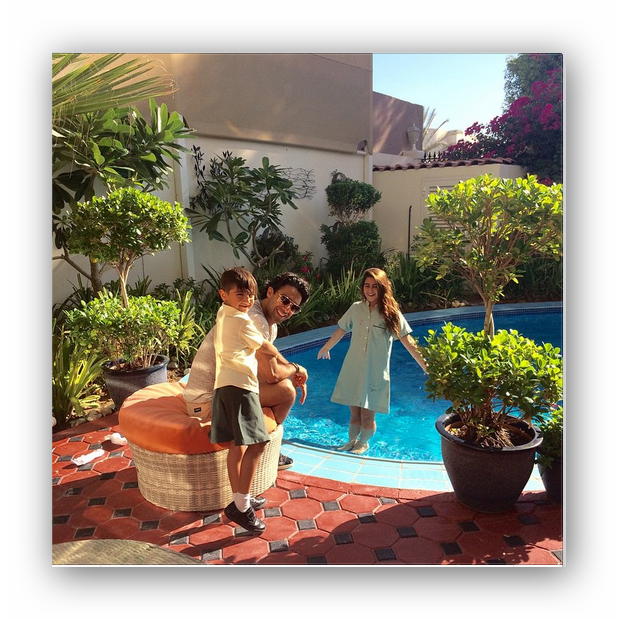 او لحظاتی پیش عکسی را از خود در منزل شخصی اش در دبی به همراه فرزندانش منتشر کرد.